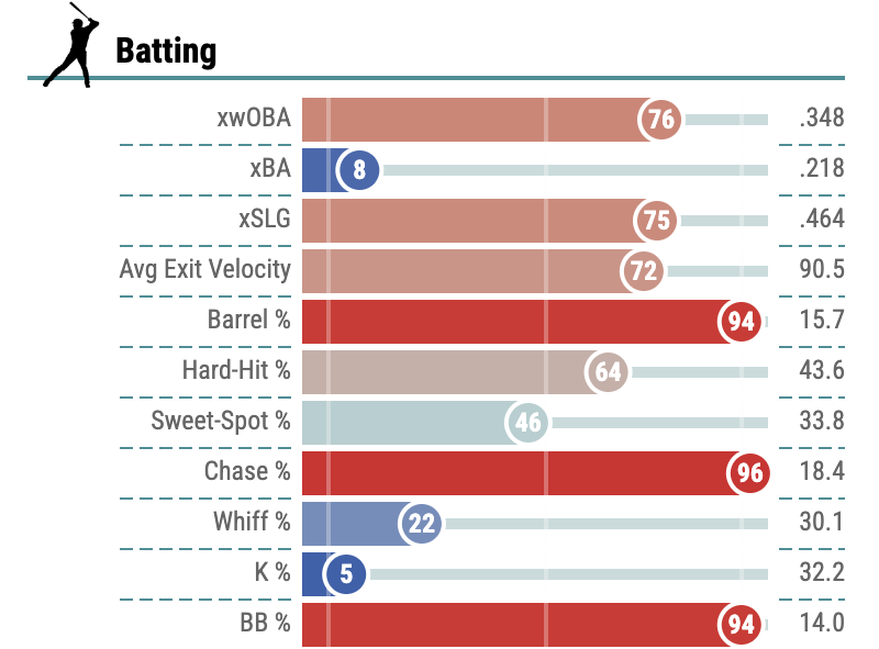 You can see what makes Suwinski so interesting from the above chart. He doesn’t chase balls out of the zone and when he connects, he squares the ball up. If the 25-year old can continue to progress like he did last year, it’s easy to see that he can be a very valuable offensive weapon.