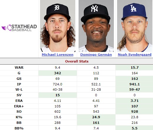 It’s that time of the year: Spring Training is back! However, that has not and will not slow down the rumor mill. On 2/11, Jon Morosi tweeted the Pirates were one of a handful of teams monitoring the starting pitching market (https://x.com/jonmorosi/status/1756763277072142745?s=20). The names he dropped during the tweet and subsequently on video call to MLB Hot Stove were Noah Syndergaard and Michael Lorenzen. Then on 2/12, Mike Rodriguez reported that Domingo German has met several times with the Pirates, as well as the Angels (https://x.com/mikedeportes/status/1757163670524583995?s=20). Following the German tweet, Pittsburgh’s resident rabble rouser, Mark Madden, tweeted in favor of signing Trevor Bauer (https://x.com/MarkMaddenX/status/1757213831586038093?s=20). If people are unable to look past the façade of Mark Madden and revel in the brilliance of his tweet, clearly they don’t understand what a “heel” is in the wrestling world. NS9 has already covered this topic: (https://northshoreninedotcom.wordpress.com/2024/01/24/no-the-pirates-should-not-sign-trevor-bauer/) therefore, it won’t be discussed again in this article. So, that leaves two rumors and three players. The question is: do any of these pitchers make sense for the Pirates?