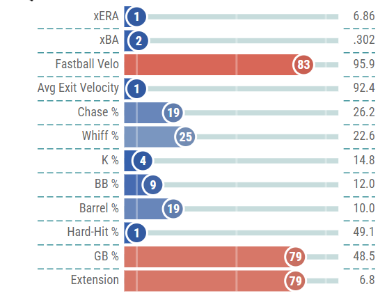It doesn’t take being a pitching genius to see what the issue is with Ortiz. He’s leaving his fastball and sinker over the heart of the zone on a consistent basis. Luis is struggling massively to place these pitches anywhere but out of the strike zone or right down the middle of the plate. This allows hitters to sit back and wait for their pitch and give it a drive since they know they aren’t going to get pitches on the edge of the zone. The slider gets the 31% whiff rate because it can dance on the edge of the zone and its movement allows him to get guys to chase the stuff. Working with one pitch can work for 1-2 innings but will never be sustainable for a starter long-term. This is arguably the biggest reason why his stats in the minors never looked all that impressive; elite stuff means nothing if you’re making it easy for the batter to barrel up.