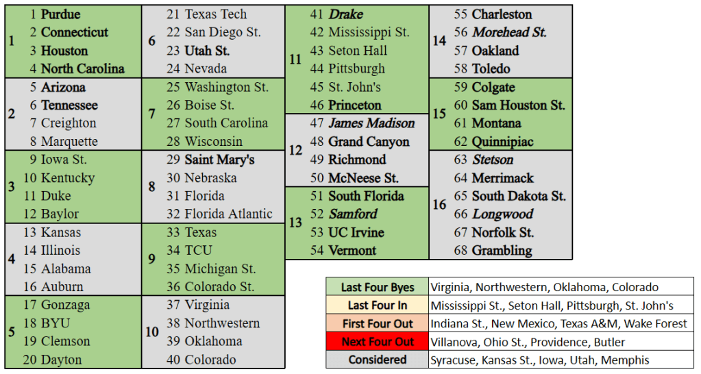 St. John’s: will likely fall out of the projected field with a loss to Seton Hall