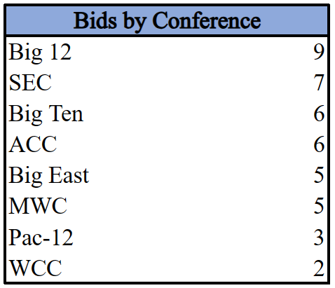 Texas A&M: I believe the Aggies need at least two wins in the SEC tournament; could still be in the mix with one win